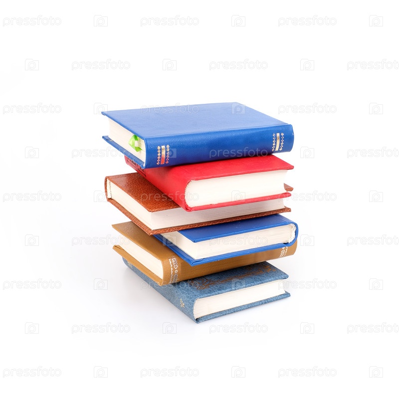 Стопка книг в цветных обложках с белыми листами, изолированных на белом фоне