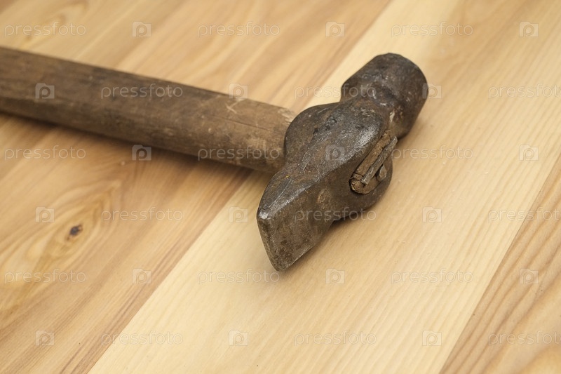 Старый молоток, изолированный на деревянной доске