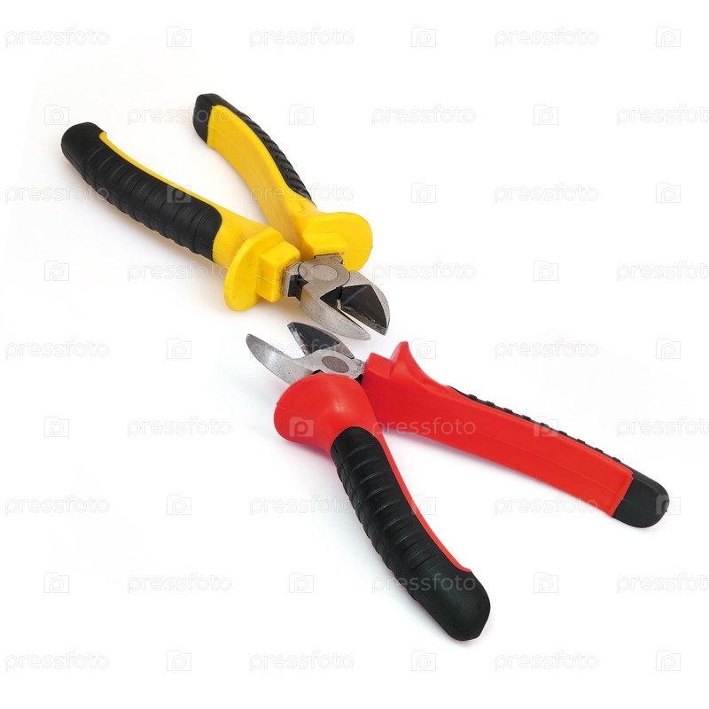 Изолированные ручные инструменты для ремонта и монтажа: плоскогубцы (композиция на белом фоне)