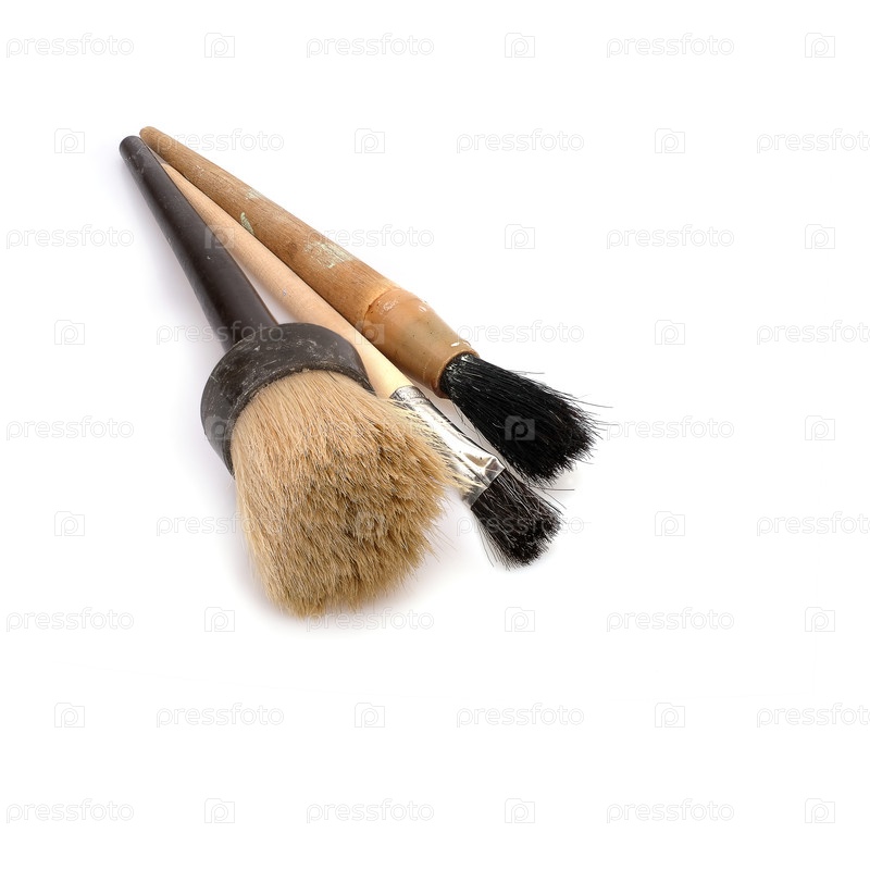 Старые круглые кисти, изолированные на белом фоне