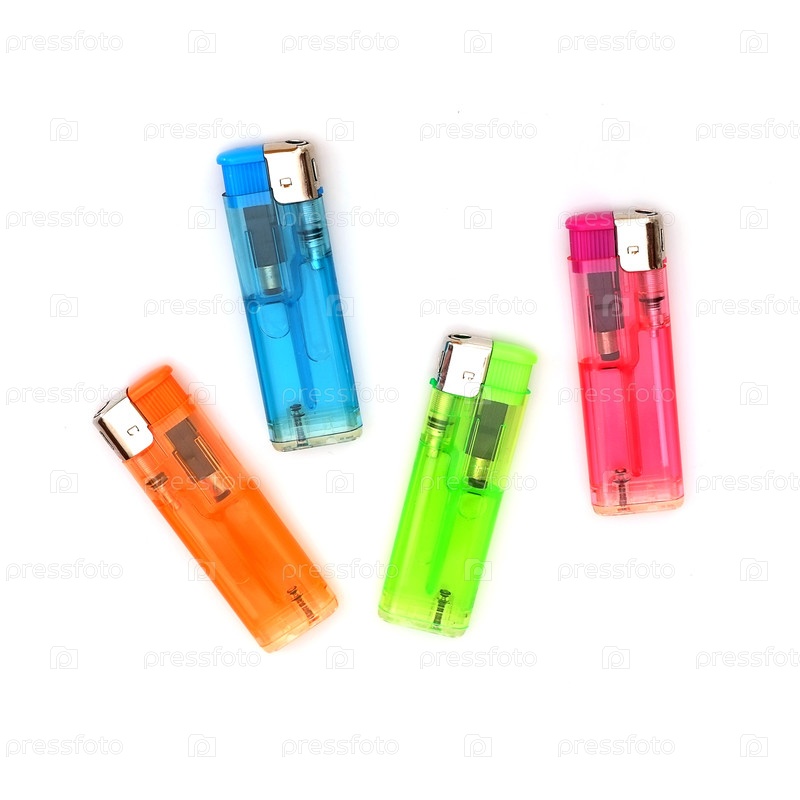 Газовые зажигалки, изолированные на белом фоне