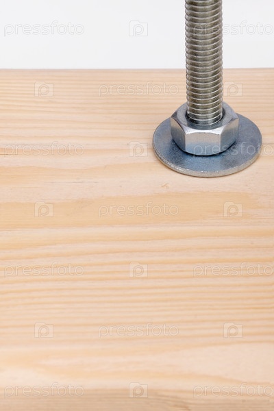 Длинный металлический винт, изолированный на деревянном фоне