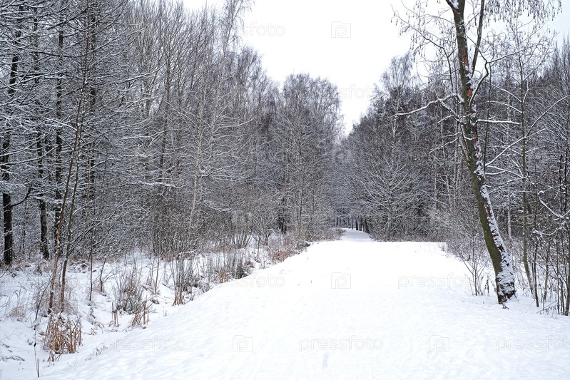 Красивый вид на холодный зимний лес со снегом и заснеженными деревьями