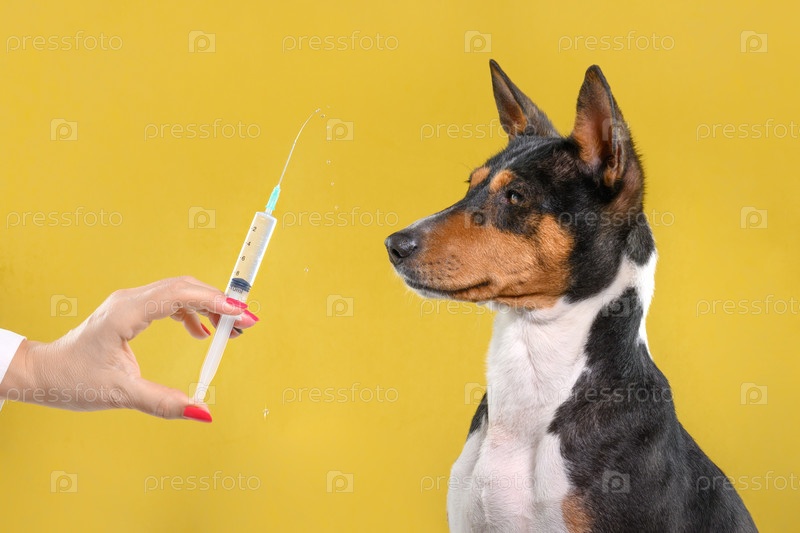 Собака породы басенджи получает важную медицинскую инъекцию от врача
