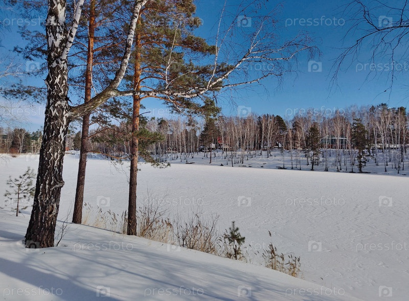 Зимнее озеро под снегом