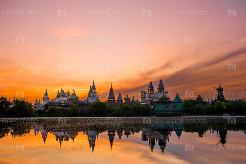 Живописное закатное небо над Измайловским Кремлем. Россия