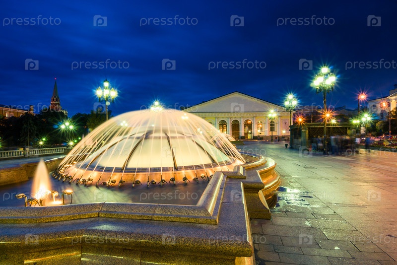 Вечерний вид на Манежную площадь в Москве. Россия
