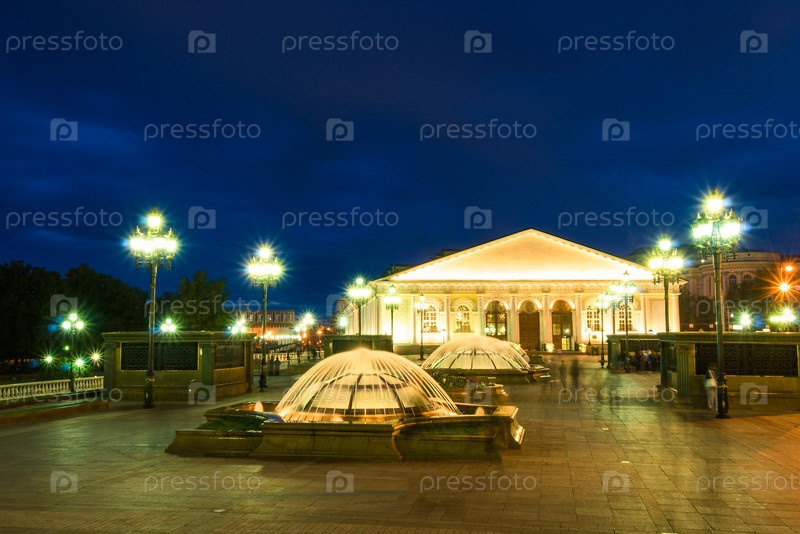 Вечерний вид на Манежную площадь в Москве. Россия