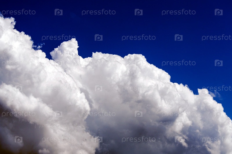 Белые кучевые облака на фоне глубокого синего неба (фон)