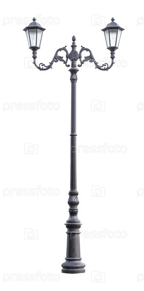 Старинный фонарный столб, изолированный на белом фоне (элемент дизайна)
