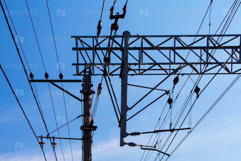 Крупный план фрагмента опоры железнодорожной линии электропередач