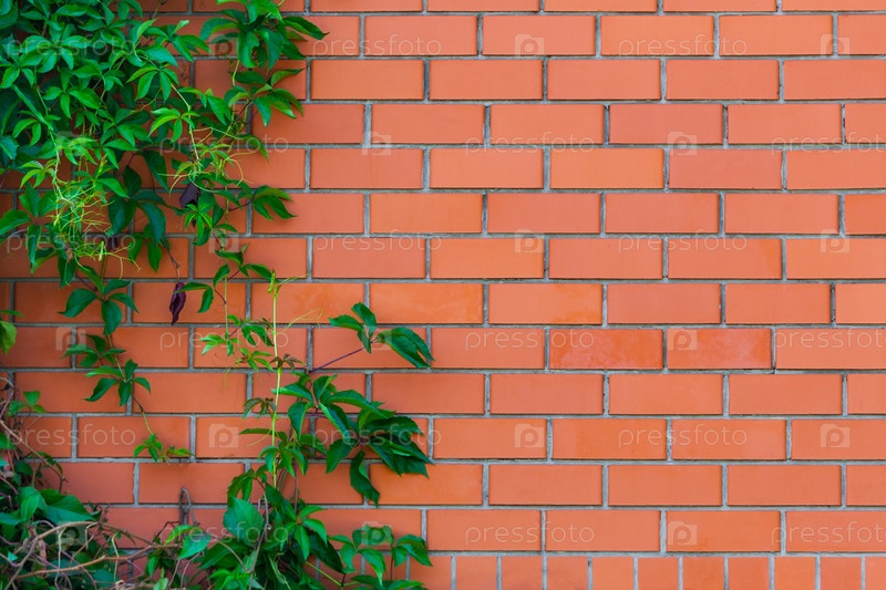 Красная кирпичная кладка с лианой (текстура, фон)