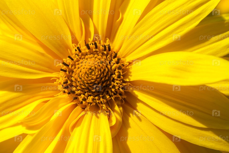 Крупным планом вид желтых цветов, освещенных солнечным светом (фон)