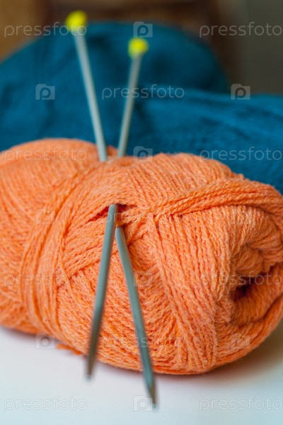 Крупный план клубка ниток и спиц