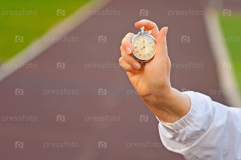 Женская рука держит механический секундомер (крупный план)