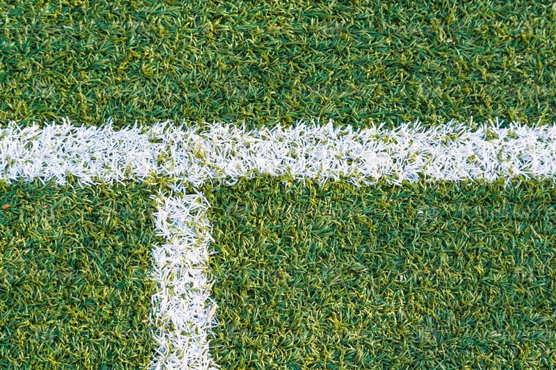 Спортивное поле с искусственной травой и белой разметкой