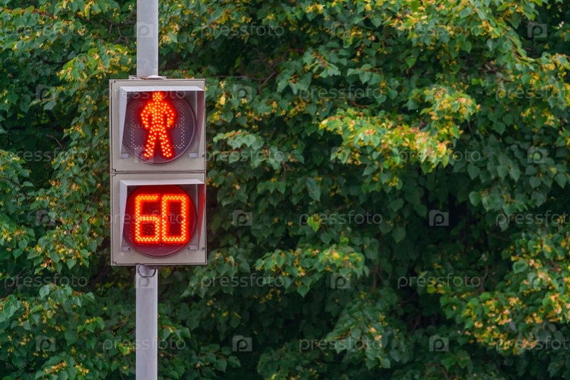 Пешеходный светофор горит красным светом, отсчитывая последние минуты