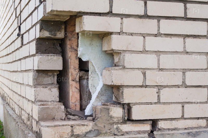 Разрушенная кирпичная кладка