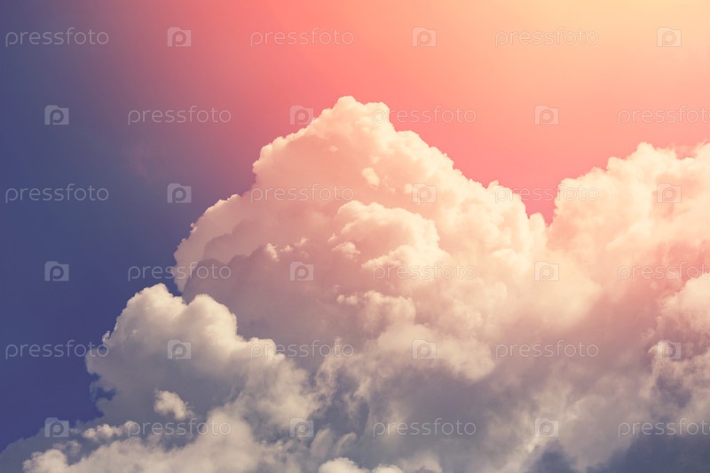 Кучевые пушистые облака в солнечном свете. Тонированный (фон)