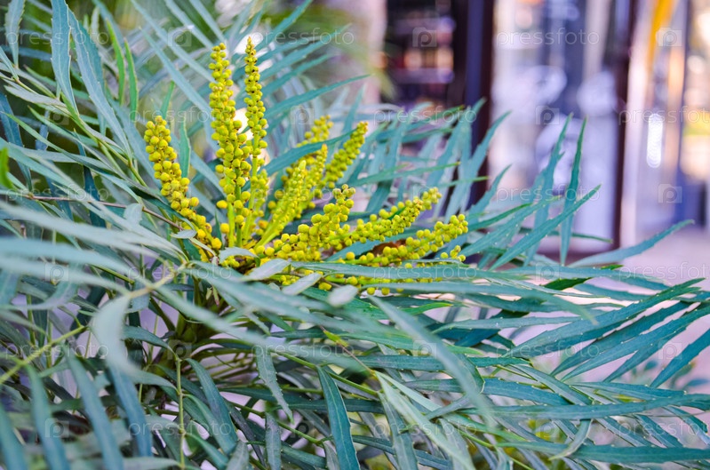 Россия, Краснодарский край, Сочи. ноябрь 2024. кустарник в парке. магония