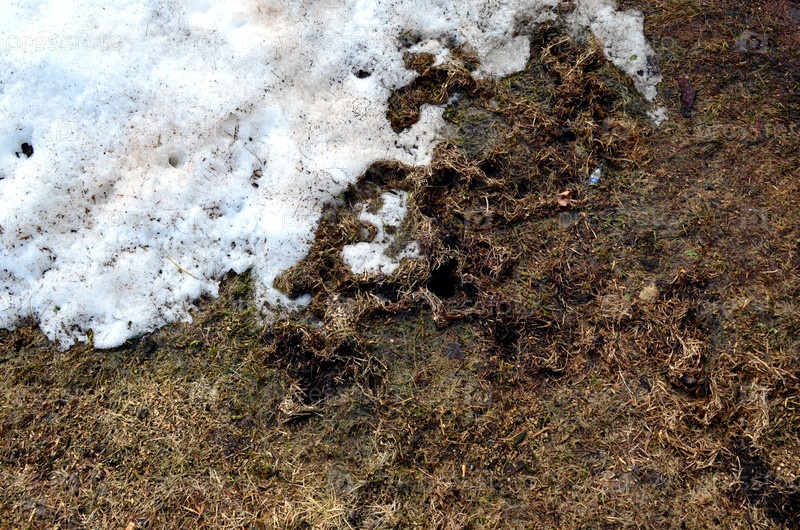 Поврежденный мышами газон зимой