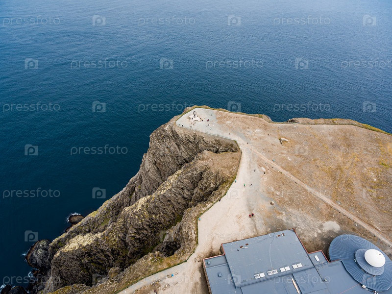 Аэрофотосъемка побережья Баренцева моря, мыса Нордкап (Nordkap) в северной Норвегии