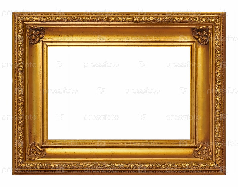 Золотая рама для картин, зеркал или фотографий на белом фоне