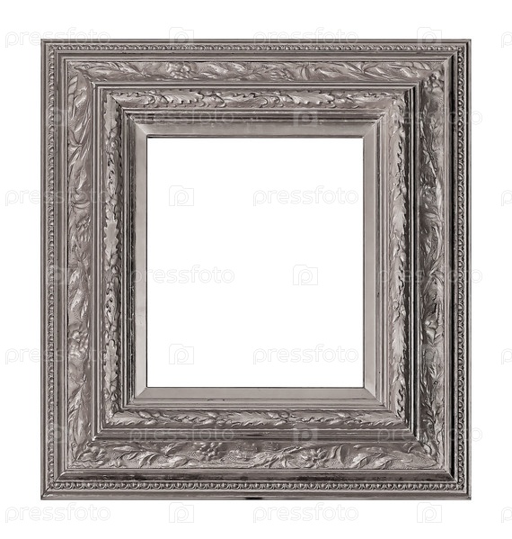 Серебряная рама для картин, зеркал или фотографий на белом фоне