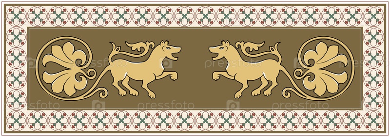 Дизайн: средневековый лев (монстр) и готический орнамент