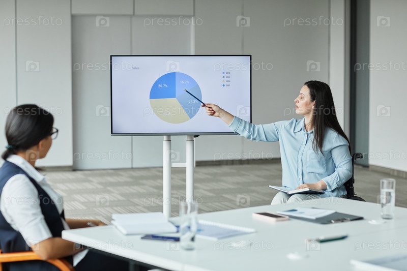 Женщина в инвалидном кресле на деловой встрече