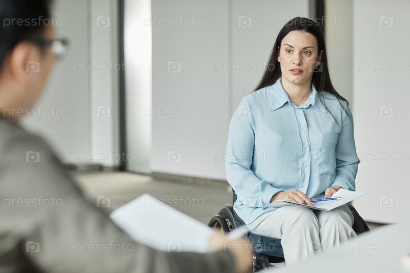 Успешная женщина в инвалидном кресле на встрече