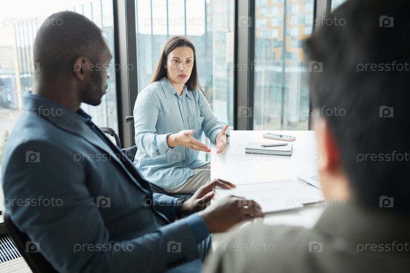 Женщина-лидер бизнеса с инвалидностью на встрече