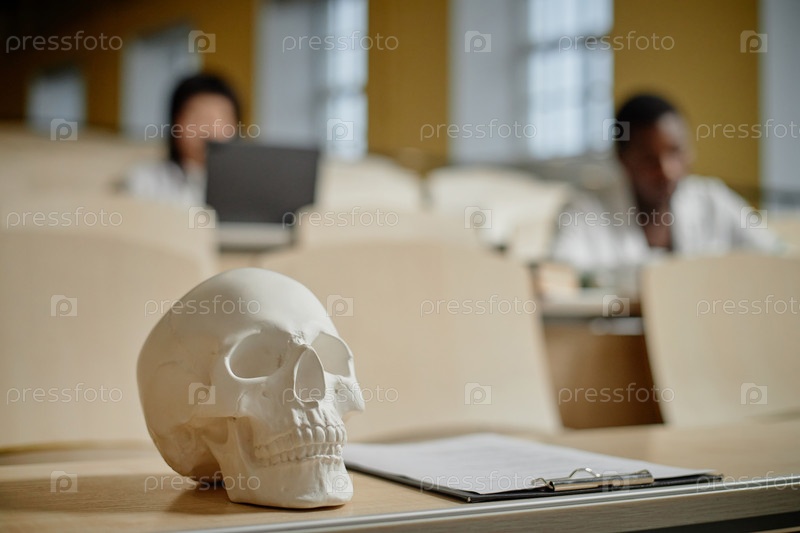 Модель черепа в классе колледжа
