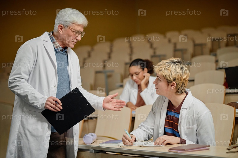Профессор разговаривает со студентом в классе