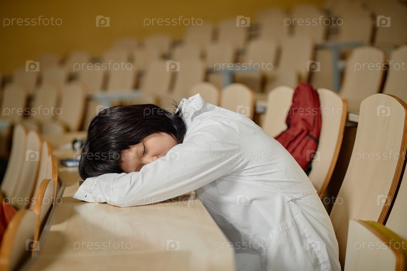 Медицинский студент спит в колледже