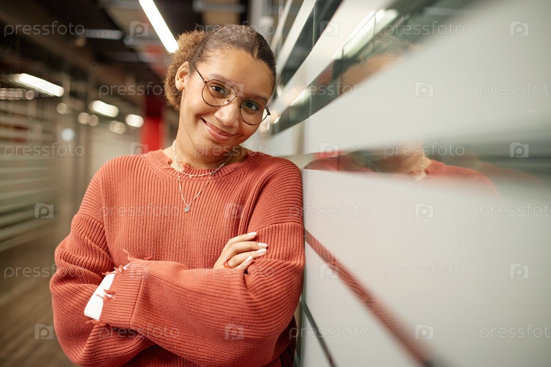 Чернокожая девочка-подросток в роли студента, улыбающегося перед камерой