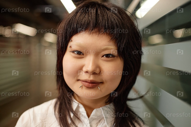 Улыбающаяся азиатская девушка с пирсингом лица