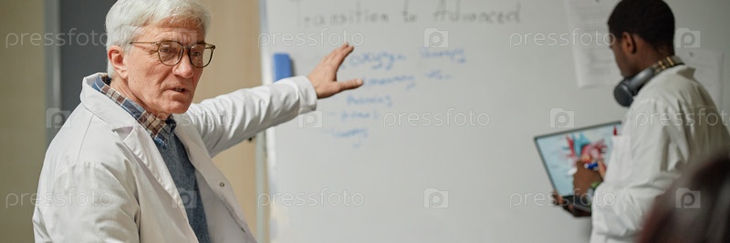 Старший профессор преподает медицину в классе Header Image