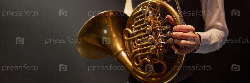 Header Image of Музыкант толкает клапан рычаги французского рога играют музыку на сцене