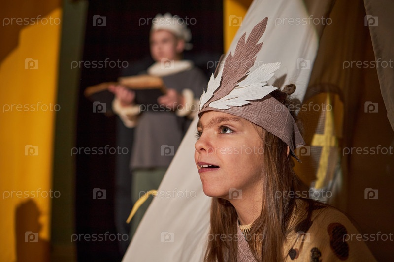 Портрет девушки в костюме, сосредоточенной на актерской деятельности в Инклюзивном детском театре