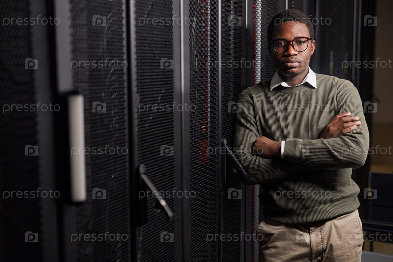 Портрет уверенного молодого афроамериканского профессионала в области центра обработки данных