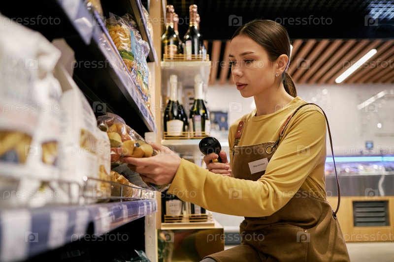 Использование сканера штрих-кодов в проходе продуктового магазина