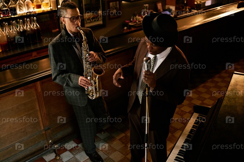 Музыкальная группа мужского саксофониста и певца, исполняющая джаз в баре
