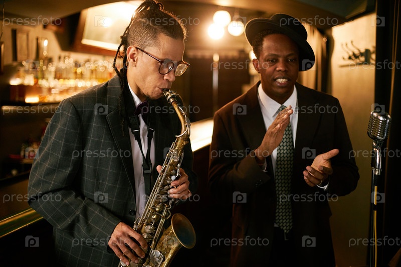 Мультиэтническая группа мужских саксофонистов и вокалистов, выступающих в джазовом клубе