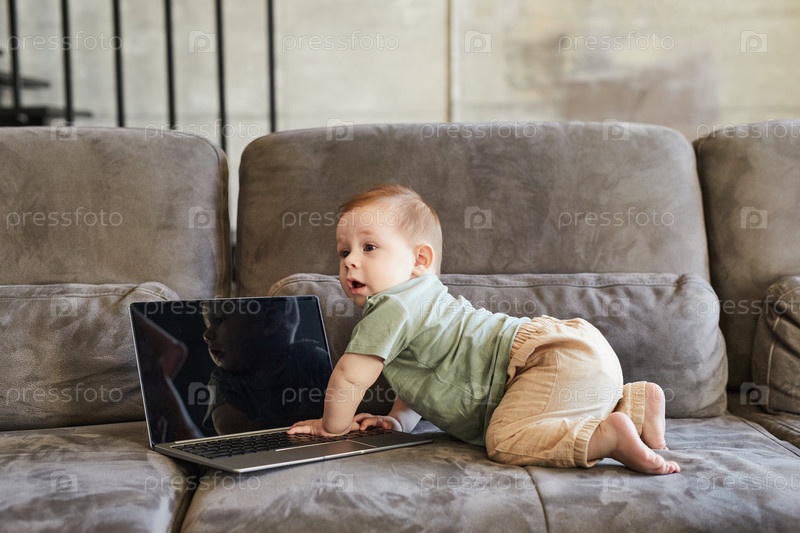 Портрет милого ребенка с ноутбуком