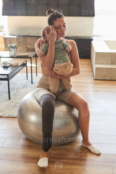 Любящая мать с инвалидностью обнимает ребенка