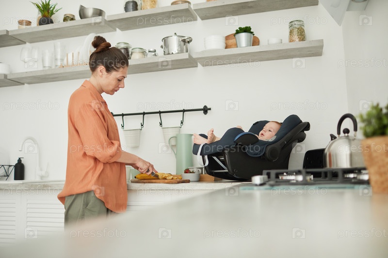 Современная мама готовит дома с малышом