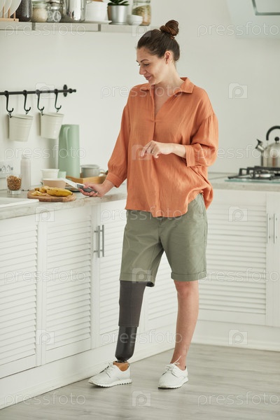 Современная женщина с инвалидностью готовит еду дома