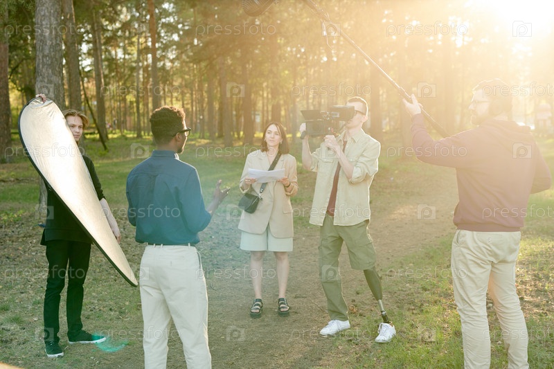 Молодой африканский мужчина говорит перед инвалидом-оператором