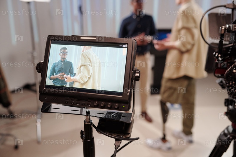 Оператор и африканский бизнесмен на дисплее камеры